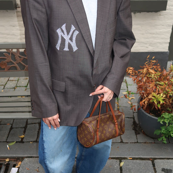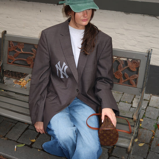 Vintage grijze oversized blazer one size, met een opvallend NY detail.